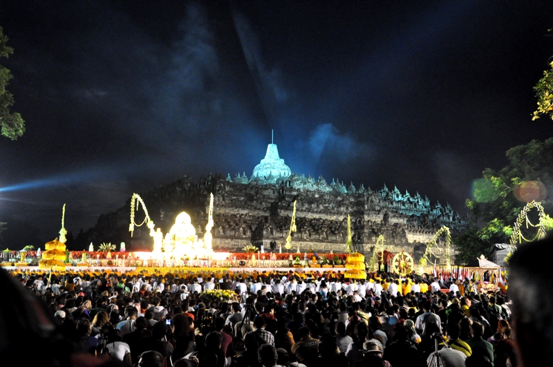 Malam semakin larut. Bulan masih terang benderang. Kemegahan candi peninggalan wangsa Syailendra ini makin menawan. Para wisatawan semakin membludak bak festival sekaten jogja. Mereka tumpah ruah untuk satu alasan – pelepasan seribu lampion – untuk menutup prosesi tri waisak. Para umat budha dan juga para wisatawan menuliskan impiannya di lampion, berharap supaya diangkat ke langit dan terkabul.