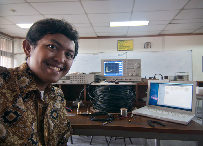 Ya, itu saya bersama PA saya (jadi narsis gini). Di belakang saya ada osciloscope 500 Mhz, macbook, dan kabel-kabel tidak jelas yang menjadi mainan saya akhir-akhir ini.