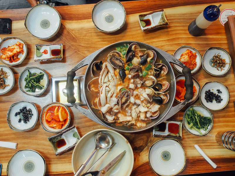 Jeju terkenal dengan seafood-nya. Jangan lewatkan kerang abalon sebesar kepalan tangan orang ini.